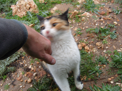 Ich denke, gegen den Blues hilft nur Reisen. Nach fast zwei Wochen am selben Ort wird es auch wieder Zeit. Mittlerweile kennen wir gefühlt das halbe Dorf. Zumindest kennt das halbe Dorf uns: die beiden bekloppten deutschen Touristen, die im Winter bei 15 Grad und Regen in Griechenland Urlaub machen. Täglich schauen drei bis vier Leute bei uns vorbei und schenken oder verkaufen uns Schnaps, Olivenöl, Brot, Apfelsinen, Zitronen, Äpfel, Salat, Tomaten, Käse, Kräuter und frisch gefangene Fische. Wir wissen gar nicht, wohin mit dem ganzen Essen, das übrigens ausgezeichnet ist. Ich mache seit fünf Wochen Diät, um wieder ein anständiges Klettergewicht zu bekommen. Unsere Pflegekatze hat hingegen mittlerweile, optisch betrachtet, ihr Gewicht verdoppelt. Jetzt sollte sie halbwegs die Zeit bis zur Ankunft der regulären Touristen im Frühjahr überstehen. Ich habe mich so sehr an dieses dankbare kleine Wesen gewöhnt, dass ich jetzt schon merke, wie ich es vermissen werde.