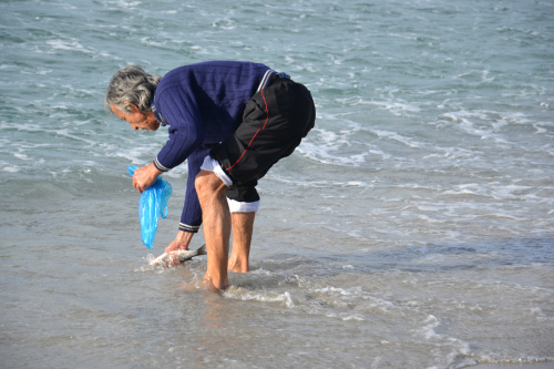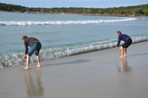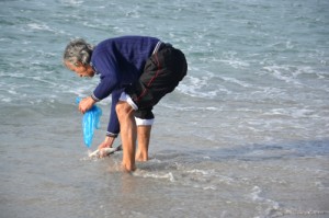 Anschließend wusch Theo den Fisch im Meer aus. Karsten unterstützte, als ob er nie etwas anderes getan hätte.