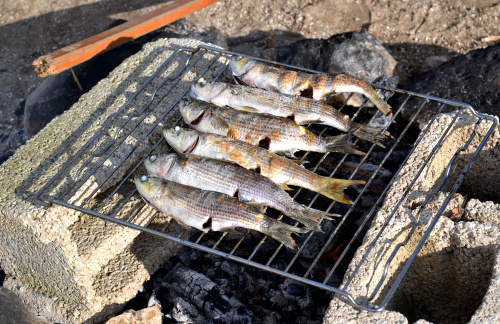 Die Glut war mittlerweile heiß genug. Ein Tropfen Olivenöl noch. Und „cegar, cegar..“ (=langsam, langsam..). Dieser Fisch war der mit Abstand beste meines Lebens. Danke, Theo!
