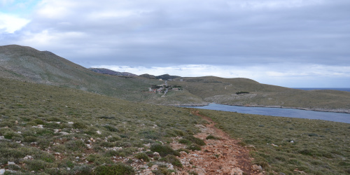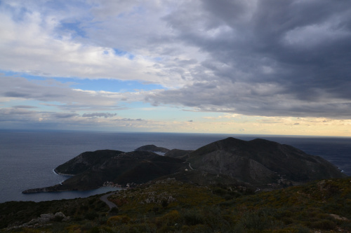 Die Landschaft ist atemberaubend und berührt mich. Die raue Küstenlandschaft auf der einen und die schneebedeckte Berglandschaft auf der anderen Seite. Das kraftvolle Wetter unterstreicht die Atmosphäre perfekt. Dazwischen kleine urige Dörfer mit den schon bekannten Spitztürmen wohlhabender Familien (Artikel Auf der Máni, Peleponnes). Nach rund 45 Kilometern erreichen wir das südlichste Dorf des griechischen Festlandes. Von dort an geht es zu Fuß weiter an das Kap.