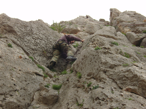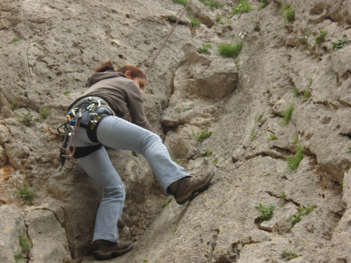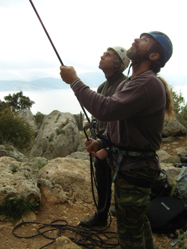 Und dann sind da noch Nikolas und Efi aus Korinth mit ihrem Sohn Dimitris, die fast jedes Wochenende mit ihrem Wohnmobil hierher kommen. Ich befürchte, wir haben die beiden ernsthaft mit dem Klettervirus infiziert. Die 1,50 Meter große Efi sieht im Kontrast zu mir so zierlich aus, dass ich neben ihr wirke wie der ehemalige russische Profiboxer Walujew.