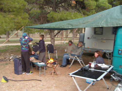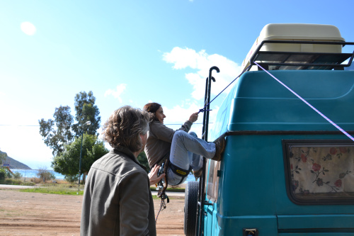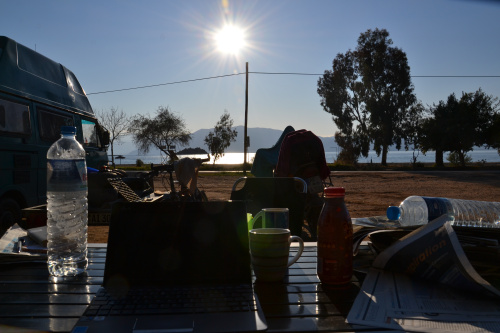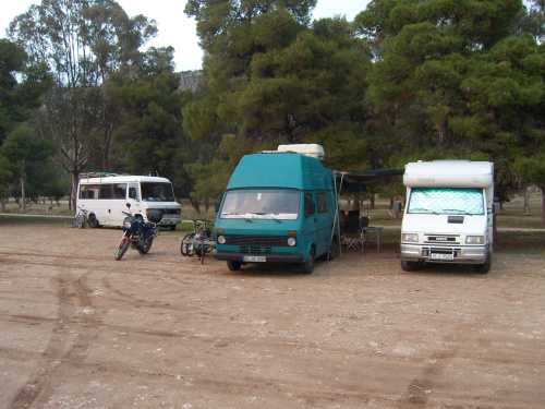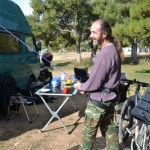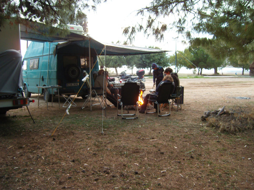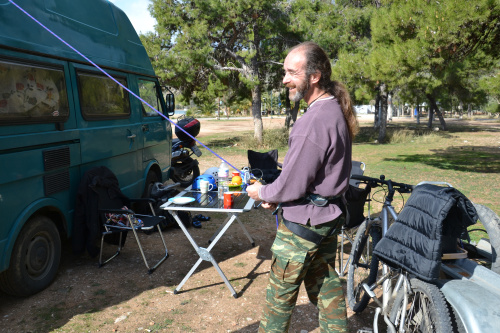 Da sind Johanna und Jürgen, ein Rentnerpärchen aus Hannover, die bereits seit elf Jahren unterwegs sind und regelmäßig die Winter in Griechenland verbringen. Von ihnen haben wir einige wertvolle Tipps erhalten, wie z.B. das Mitführen eines eigenen Adapters, mit dem man die Kochgasflaschen an Autogastankstellen auffüllen kann.