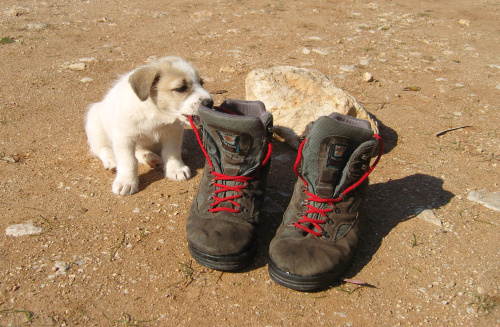 Jetzt müssen die Schuhe nur noch den Hund überleben. Die hardest!