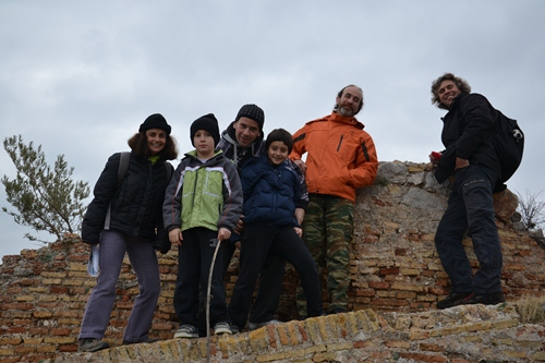 Dann haben wir noch die höchste Erhebung der Halbinsel bestiegen (740 m). Dabei haben wir entdeckt, dass Loukas durchaus Bergsteigerqualitäten hat. Er ist flink über die Steine geklettert und hatte einen irrsinnigen Spaß dabei. Übernachtet haben wir in der Hochebene. Wenn du genau suchst, entdeckst du unseren Bus auf dem Foto unten. In der Nacht hat es dann auch mal richtig geschneit. Am nächsten Tag wollten wir eine der heißen Quellen auf der Insel aufsuchen. Voller Vorfreude sah ich mich schon nach drei Monaten mein erstes warmes Vollbad nehmen. Die einzige geöffnete Quelle hat uns dann aber doch etwas enttäuscht. Wir entschieden uns, mit dem Vollbad bis Thermopiles zu warten.