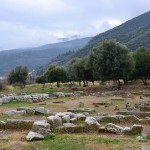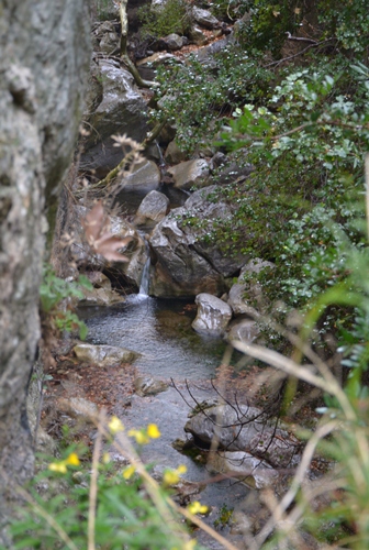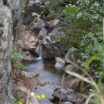 Für das darauf folgende Wochenende hatten wir uns mit Nikos in Paleia Epidauros am Strand verabredet. Auf dem Weg dorthin haben wir einen Abstecher nach Trizina gemacht und uns die Ausgrabungen eines antiken Tempels und Ruinen einer byzantinischen Kirche angeschaut. Wandern kann man dort auch – in der Teufelsschlucht. Weil das Wetter unbeständig war und wir außerdem mit Nikos verabredet waren, sind wir nur bis zum Wasserfall und eine vermutlich natürliche Brücke über die Schlucht gegangen, die so genannte Teufelsbrücke.