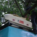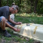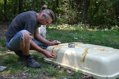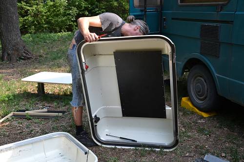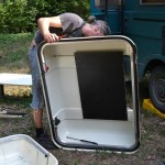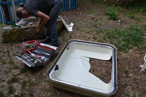 Dann durfte ich erfahren, wie sich die Schicksale einer unschuldigen Dachbox und eines leider etwas zu tief hängenden, durchaus resistenten Astes kreuzten und ganz plötzlich zu meiner Realität wurden. Ich entsann mich, dass ich als Motivation für die Reise einmal „die Suche nach dem inneren Kompass“ angegeben hatte, und fragte mich, wie mein innerer Kompass eigentlich so tickt, dass ich jetzt mitten in einem Waldstück in Moldawien eine kaputte Dachbox mit Zwei-Komponenten-Glasfaserspachtel flickte. Und soll ich verraten, zu welchem Schluss ich gekommen bin? Dieses Scheißding zeigt immer in die Richtung, in die ich gerade renne. Das ist doch seltsam, oder? Im Umkehrschluss hieße das ja, dass, egal für welche Richtung ich mich entscheide, ich immer in die richtige Richtung gehe. Darüber muss ich noch einmal nachdenken.