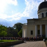 Hochzeit vor dem einzigen Supermarkt in der zweitgrößten Stadt des Landes. Den nächsten Supermarkt gibt es in der Hauptstadt. – Ein Hochaus. – Drei Frauen arbeiten auf dem Feld. – Menschenschlange vor der Kathedrale in Chisinau. Anlass ist ein gastierendes Heiligenbild, vor dem man einen Wunsch äußern kann.