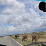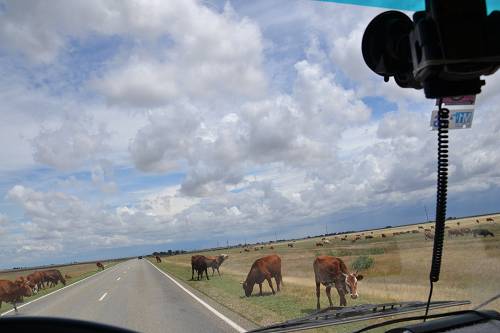 Einzige Abwechselung auf der Strecke waren hin und wieder ein wenig Verkehr, ganze Kolonnen von Landmaschinen, Kühe, die direkt an der Straße weideten, obwohl sie die ganze Steppe für sich haben, und einsame Bushaltestellen.