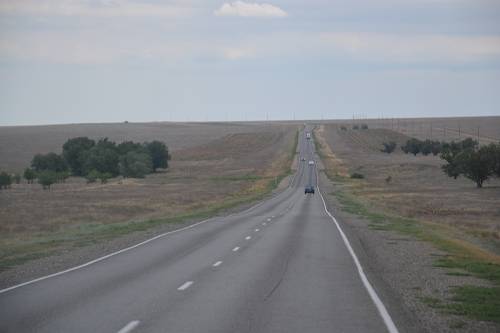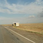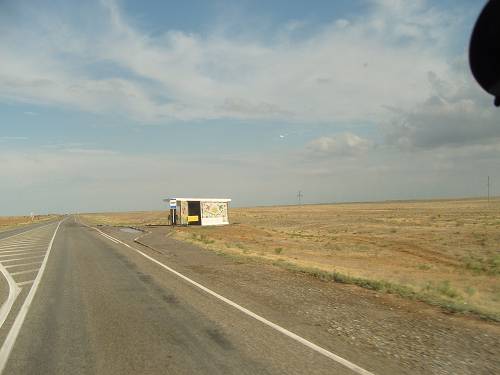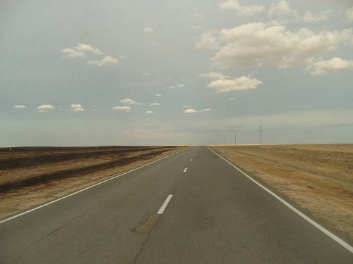 Von der Krim aus sind es ca. 4.000 Kilometer bis Almaty, der ehemaligen Hauptstadt von Kasachstan im äußersten Südosten des Landes. Ein Großteil der Strecke führt durch Steppe und Einöde. Die ersten 1.000 Kilometer haben wir bereits hinter uns gebracht. Dass wir so schnell unterwegs sind, liegt vor allen Dingen an der Qualität der Straßen, die in Russland viel besser ist, als wir erwartet hatten. Größtenteils brettern wir mit Höchstgeschwindigkeit (echte 95 km/h) über die Landstraßen. Dabei haben wir noch nicht einmal das Gefühl, etwas zu verpassen, denn links und rechts von uns sieht man entweder nur riesige Felder oder ab der Hälfte der Strecke Steppe, soweit das Auge reicht.