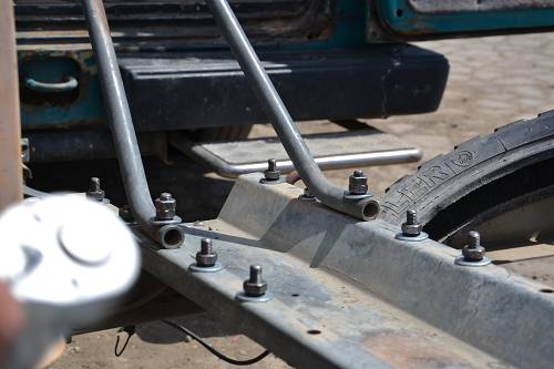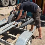 In Astrachan gelang uns die Reparatur unseres Motorradanhängers. Die Halterung des Vorderrads, deren Befestigung für hiesige Straßenverhältnisse vollkommen unterdimensioniert ist, wird jetzt mit den zusätzlichen Stahlprofilen nicht mehr ausreißen. Wer einmal vor ähnlichen Problemen kurz vor der Einreise nach Kasachstan steht, Michaelitschs Metallwerkstatt in Astrachan befindet sich hier: 46.344713,47.975288. Hier haben wir die maßgebohrten Metallprofile und die passenden Schrauben inklusive Unterlegscheiben bekommen. Mit Einbau hat das Ganze umgerechnet 16 Euro gekostet. Auch Schweißarbeiten werden gemacht.