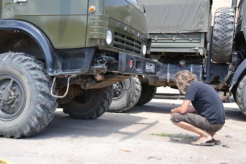 Die ständigen Reparaturen nerven zwar ungemein, führen aber hin und wieder zu freundlichen Begegnungen und spannenden Einblicken zum Beispiel in das postkommunistische Russland (Boah, das sind mal ein paar Traggelenke!).