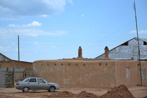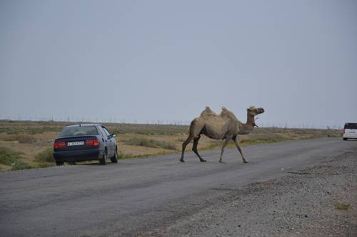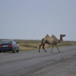 Die Ausreise aus Russland und die Einreise nach Kasachstan ist – verglichen mit dem letzten Grenzübertritt – ein Kinderspiel. Pässe und Autopapiere vorzeigen – fertig. Auf den ersten Blick ist in Kasachstan erst einmal alles wie auf den letzten Kilometern in Russland. Doch dann erkennt man die feinen Unterschiede: Statt Kühe laufen jetzt auch einmal Kamele über die Straße, Ölpumpen und Raffinerien zeugen vom neuen Wohlstand des Landes und die Ladas stehen jetzt vor Lehmhütten.