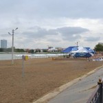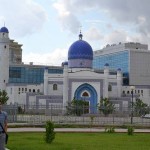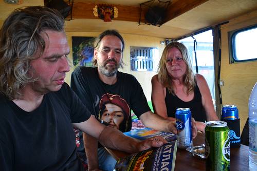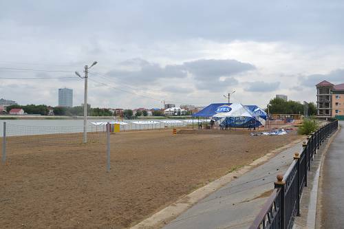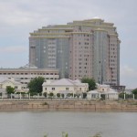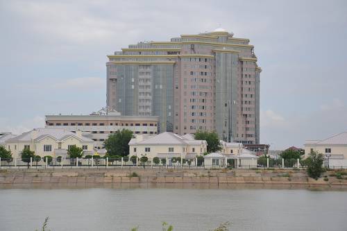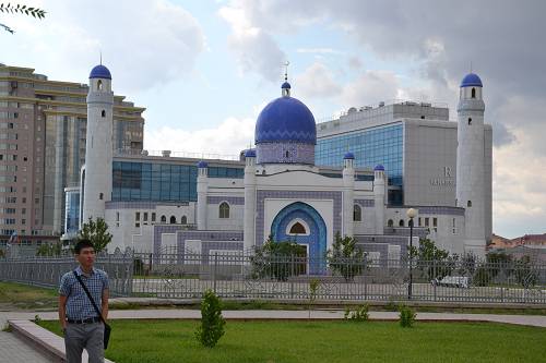 Am Horizont taucht dann die Ölmetropole Atyrau am Fluss Ural auf. Welch eine Kontraststadt! Beton- und Glaspaläste von Ölfirmen wie Haliburton, der Brutstätte von Dick Cheney und George W. Bush. Junge Menschen in nagelneuen SUVs und Limousinen westlicher Herstellung brettern durch die City. An jeder größeren Kreuzung Polizeikontrollen, an denen wir mit unserem auffälligen Gespann stets angehalten werden – bis zu dreimal innerhalb einer Stunde. Da fällt es manchmal schwer, freundlich zu bleiben. Moscheen, Kunstrasen und Efes-Bierstände komplettieren den Kontrasteindruck.