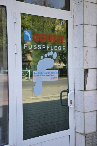 Wir krönen unseren Aufenthalt mit einem Schaschlik und bekommen Heimatgefühle, als wir an einer Podologiepraxis vorbeikommen. Später auf der Straße trefen wir erneut auf Relikte aus der Heimat.