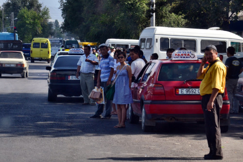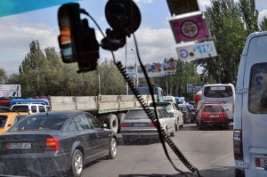 Unser erster Eindruck von Bischkek ist durchweg positiv. Alles ist irgendwie entspannter, offener, freundlicher: Passanten, Polizisten, Städtebau, Verkehr. Lediglich an Knotenpunkten war es etwas unübersichtlich. Weil alle noch „schnell rüber“ wollen über die Kreuzung, geht hier nix mehr. Stillstand in alle Richtungen. Am Ortseingang warten Passanten darauf, von Autofahrern mitgenommen zu werden.