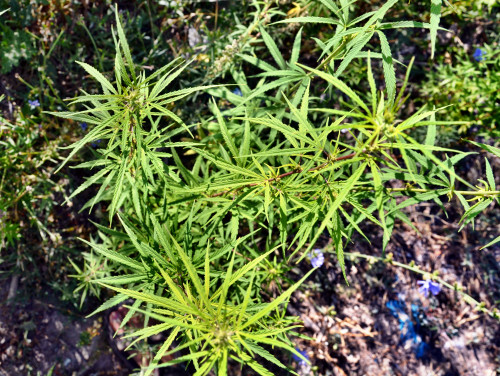 Der Tag begann bereits einige Stunden vorher mit einem kleinen Abenteuer. Wir hatten am Vorabend etwa 50 Kilometer östlich von Bischkek auf einem brachliegenden Acker zwischen Maisfeldern einen Schlafplatz gesucht. Und uns dabei im Matsch festgefahren. Da es schon dämmerte und die Mücken über uns herfielen, verschoben wir die Freifahr-Aktion auf den Morgen danach. Dort übernachten wollten wir ja eh. Mit kreativem Einsatz von zwei Wagenhebern, zwei Sandblechen einem (ehemaligen) Kuchenblech, einer Schaufel und der Unterstützung von zwei türkischen Feldarbeitern gelang uns die Rettungsaktion nach rund einer Stunde. Das war wieder mal so aufregend, dass ich keine Fotos gemacht habe. Dafür gibt es Fotos von Hanfpflanzen, die hier überall an Wege- und Feldrändern wachsen.