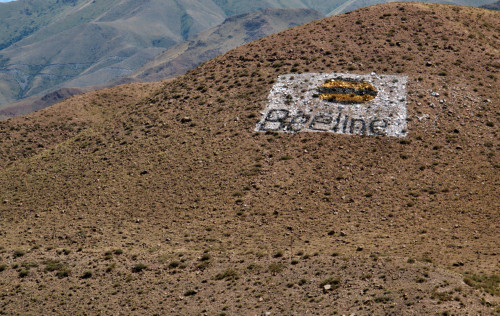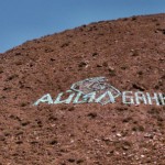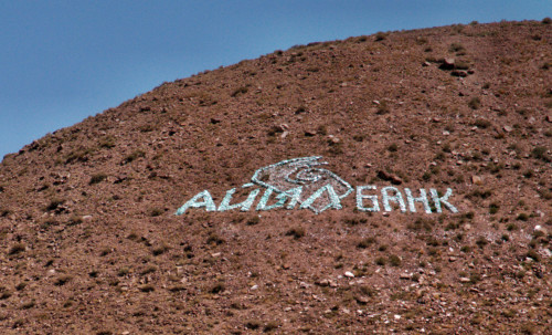 Die 240 Kilometer von Bishkek zum Issyk-Kul waren geschmeidig. So geschmeidig, dass ich aus Langweile ein paar Extrafotos aus dem Fenster geschossen habe. Besonders kreativ fand ich, wie die kargen Hügel als Werbeflächen umgenutzt wurden. Ich hoffe nicht, dass das hier irgendwann einmal eskaliert.