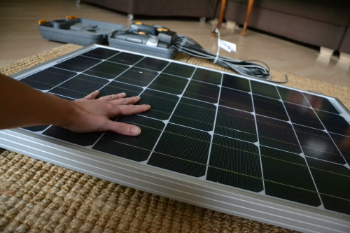 Kühlschrank, Heizung und Warmwasser funktionieren im Bus mit Gas. Laptops, Telefone und Kamera dagegen brauchen Watt und Volt. Lange favorisierten wir den Kauf eines Generators, haben uns jetzt aber doch für das Solarmodul entschieden. Sonnenenergie ist irgendwie immer verfügbar und der Transport auf anstatt in dem Bus ist ob des begrenzten Stauraums im Bus kein zu vernachlässigendes Kriterium.